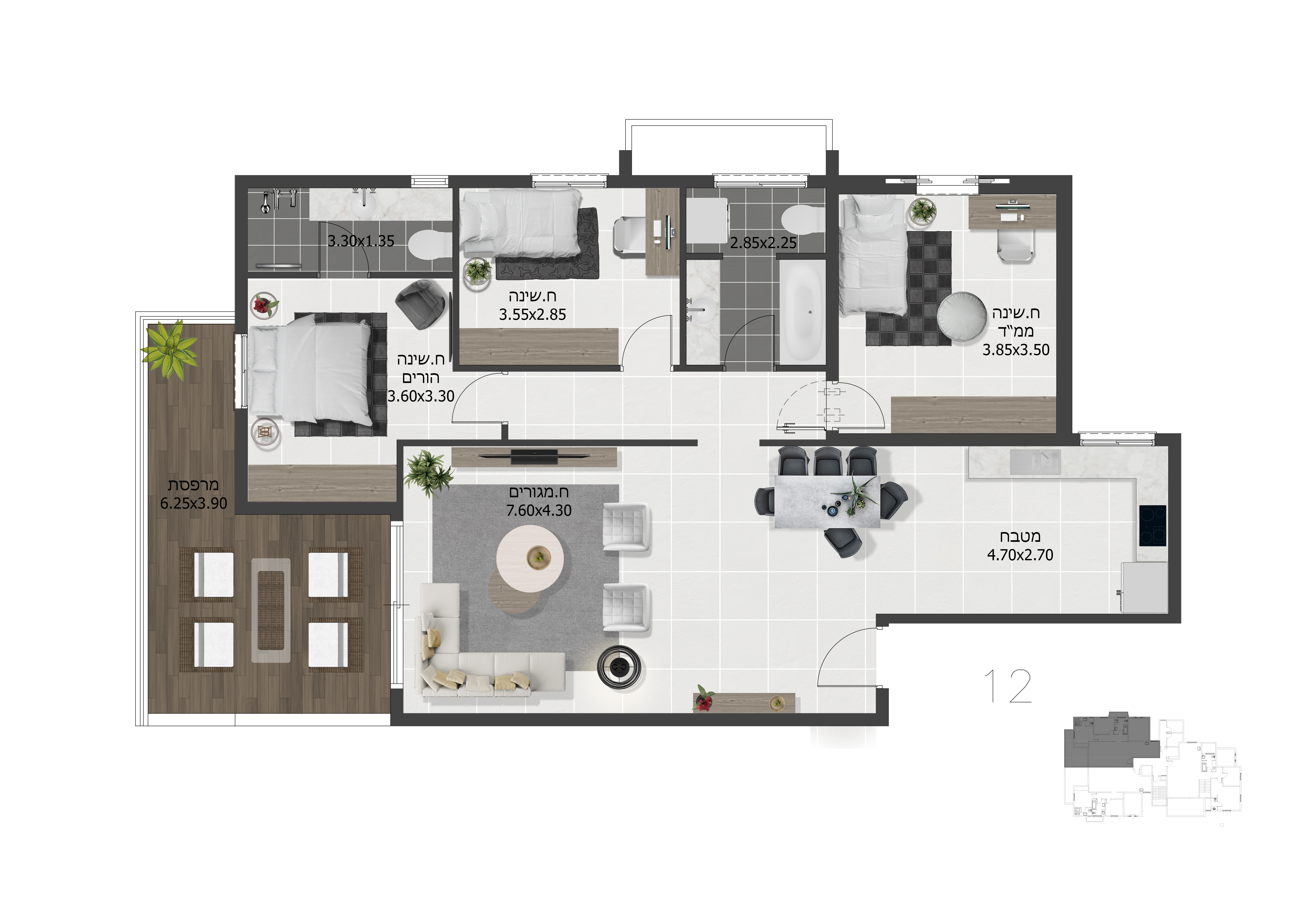 החזון שלי הוא לייצר חוויית מגורים שלמה עוד לפני שהפרויקט נבנה — החל מהלובי, דרך המרחב הציבורי והסביבה, ועד לפרטים הקטנים בתוך הדירה עצמה. כל הדמיה נועדה לא רק להמחיש, אלא לגרום לצופה להרגיש שהוא כבר שם.